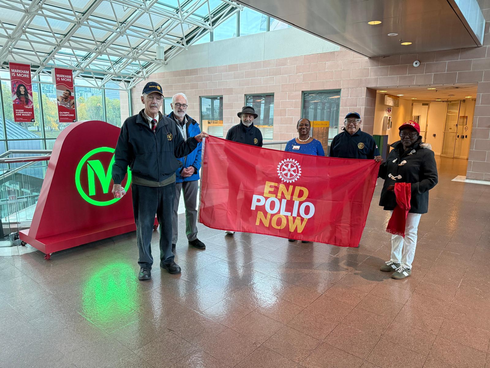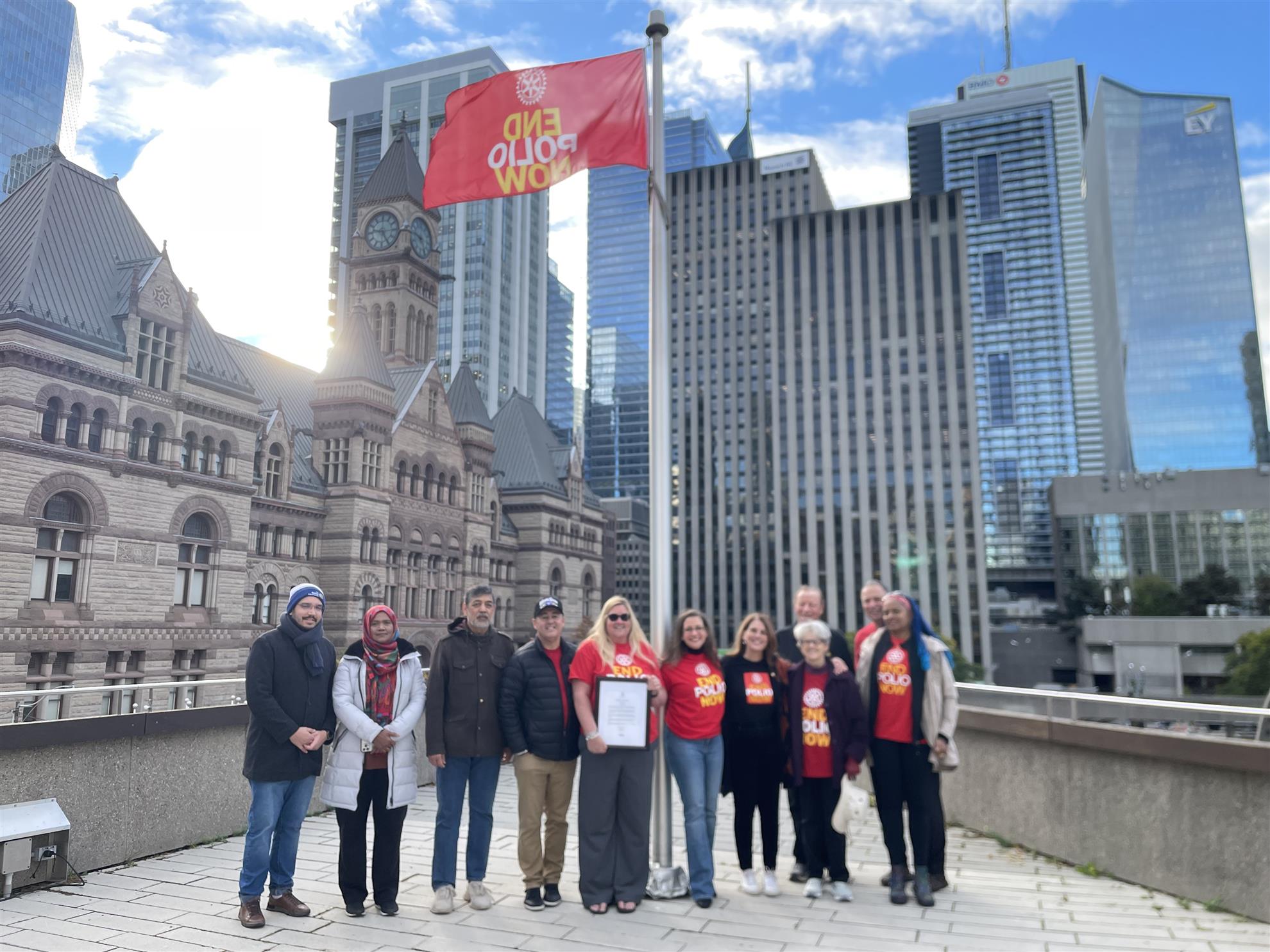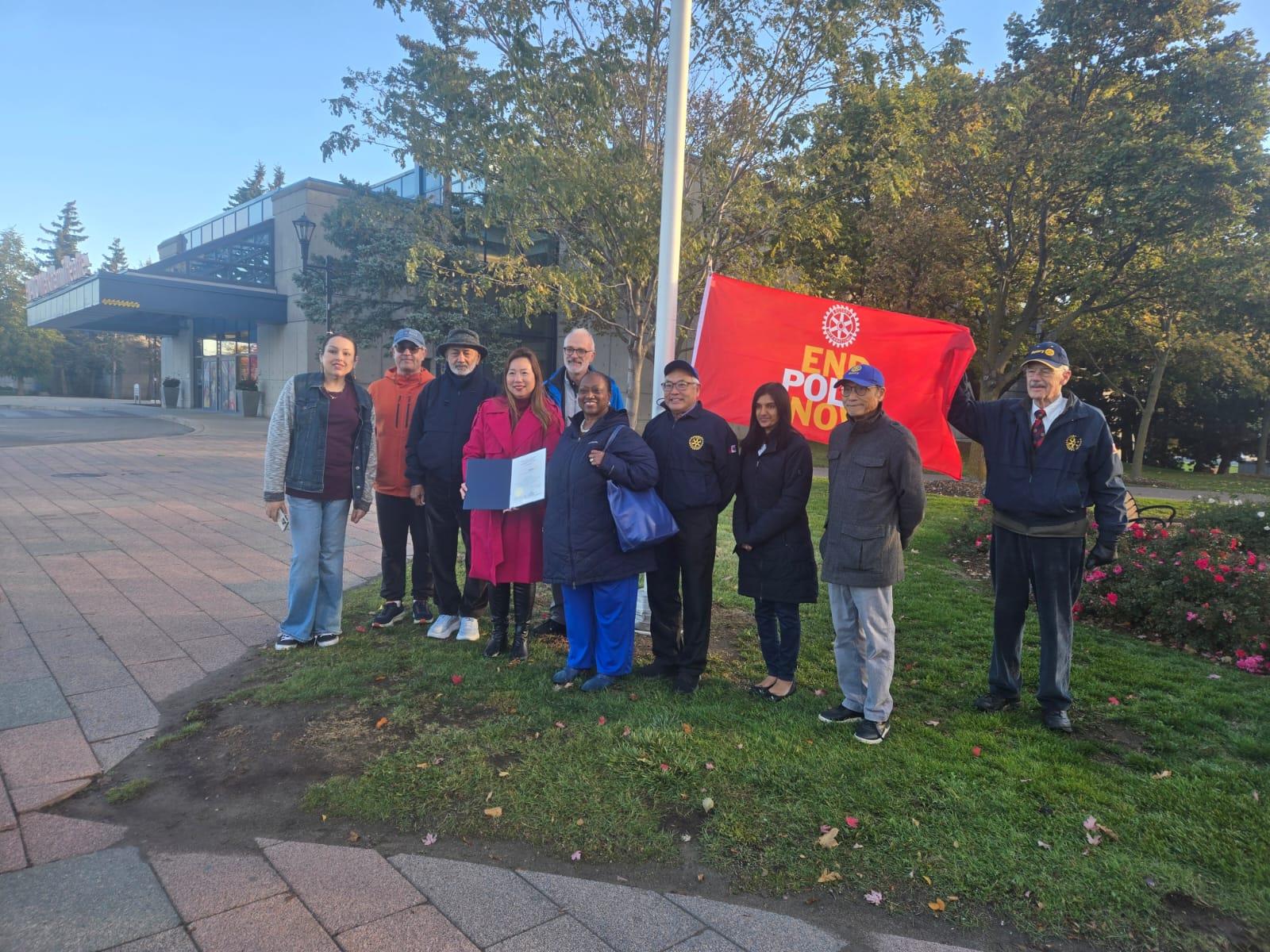 October 24th, 2025, was International Polio Day, where Rotarians, leaders and friends were at the City Hall patio to put up the flag and celebrate. Present were our current District Governor Niecy and Past District Governor Virginia. The ceremony had a moment of speeches and thank you for Canadian government support for the fight against Polio, as well as for the Rotary clubs in our District. The Mayor also sent a letter and a representative. Pictures were taken and a moment of fellowship enjoyed among Rotarians, and friends.