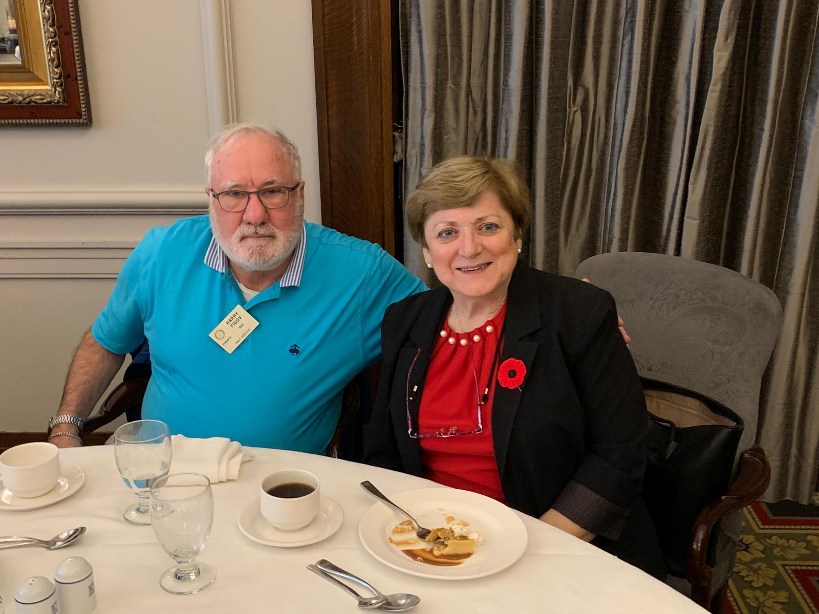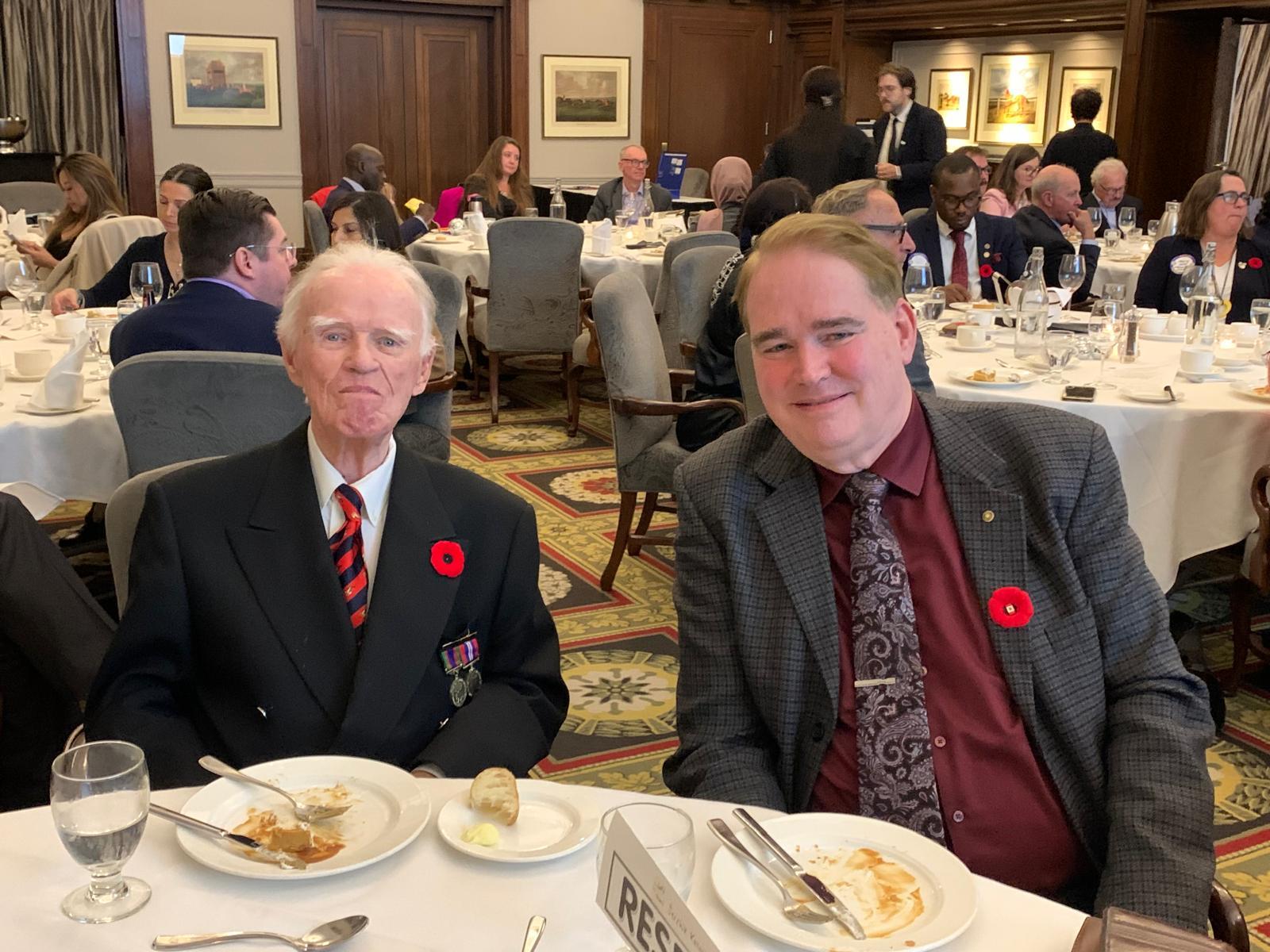 The night was made especially meaningful by the presence of 100-year-old Jack Robertson, a distinguished Pilot Officer and Navigator with the Royal Canadian Air Force, accompanied by Past President Robert O’Brien, who led a heartfelt toast to both past and present veterans. Past President Susan Howson delivered a stirring reading of In Flanders Fields by John McCrae, reminding us all of the courage, sacrifice, and resilience that define the spirit of service.