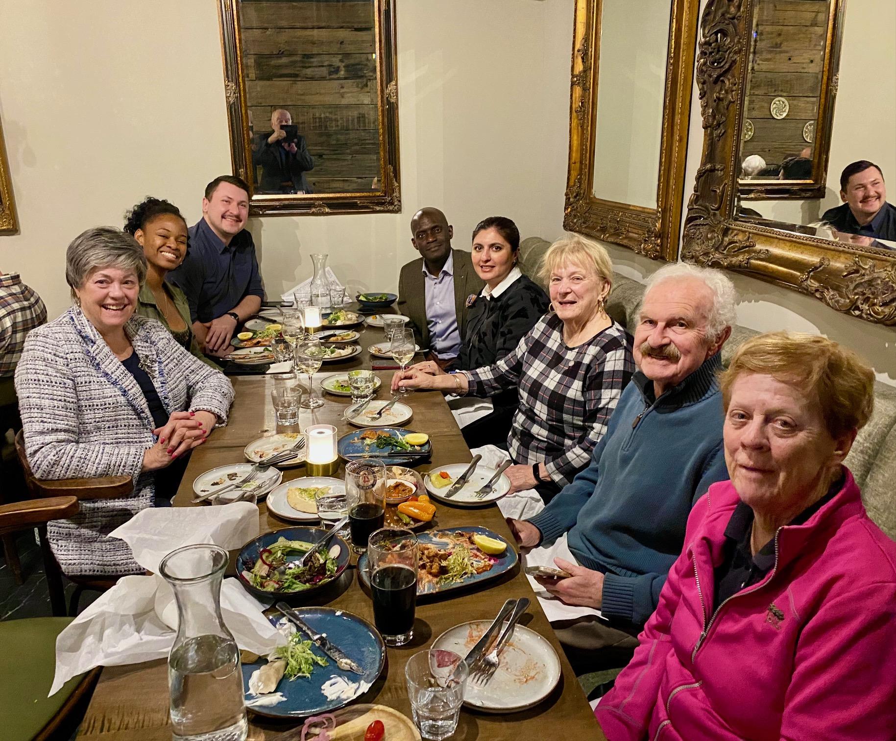 On Wednesday November 12th, 20 cheerful Rotarians and guests gathered for an evening of fellowship and culinary adventure at Hoyra Gastropub, a Ukrainian restaurant. This was the seventh outing for our club’s International Dinner Series.