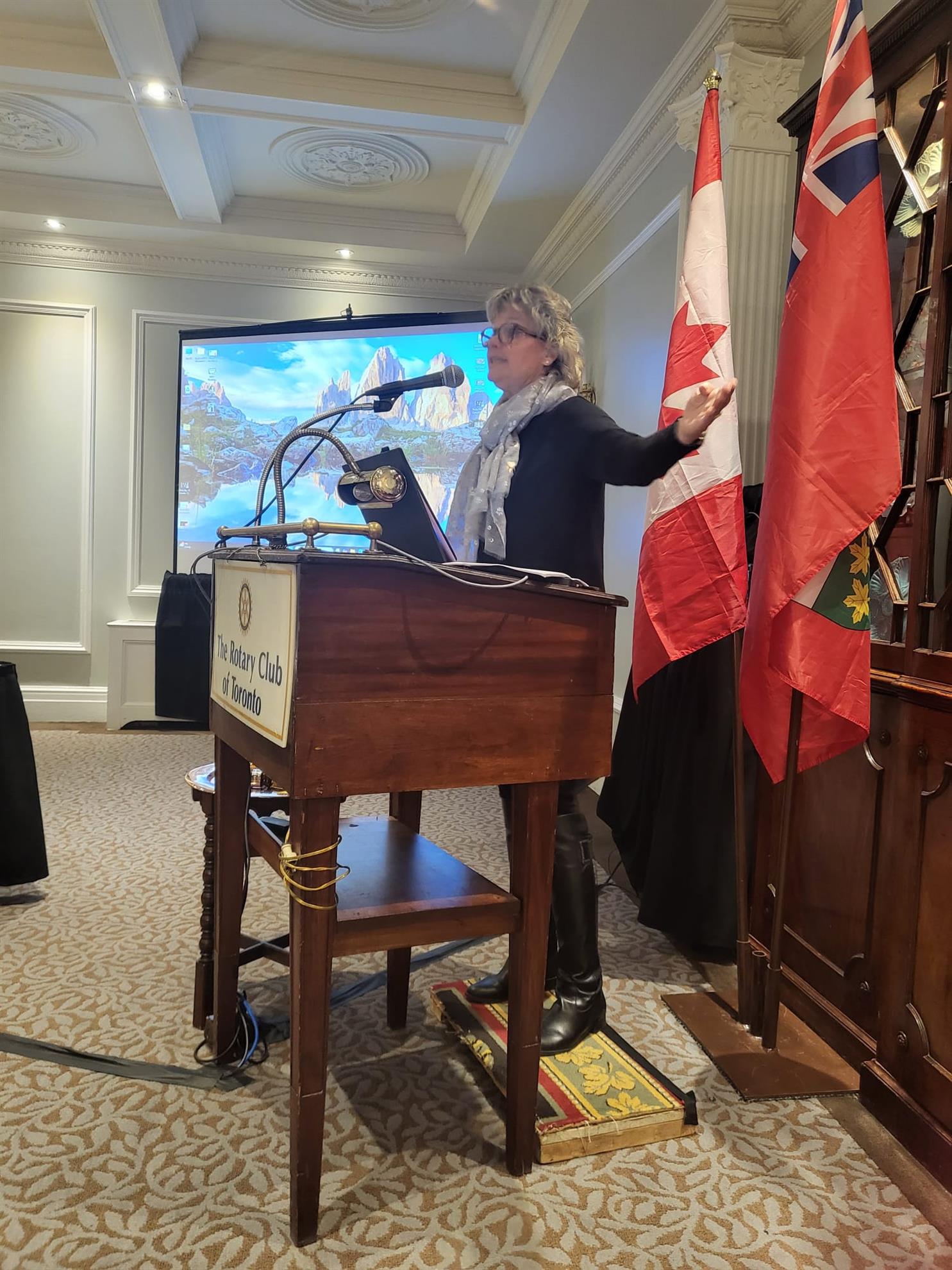 “Diane McQuaig, lives in Toronto and is a happily returning member of our club and was introduced to Rotary by her late husband Don McQuaig, and father in law Jack McQuaig.
