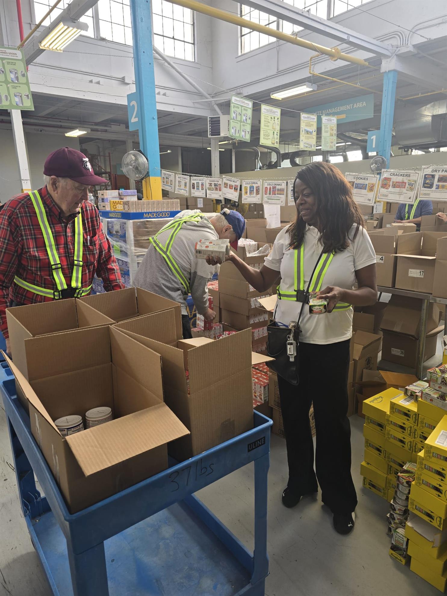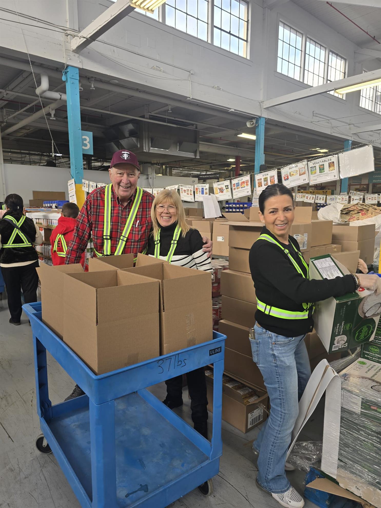 Each hamper was packed with care and consistency: two cereal pots, a box of cereal bars, two fruit juices, kidney beans, peanut butter, two tins of tuna, Dijon mustard, Goldfish crackers, garden peas, pasta in sauce, and two packs of rice. By the end of the day, we had assembled an incredible 7,200 lbs of food in record time, record spirit, record teamwork and a whole lot of good vibes.